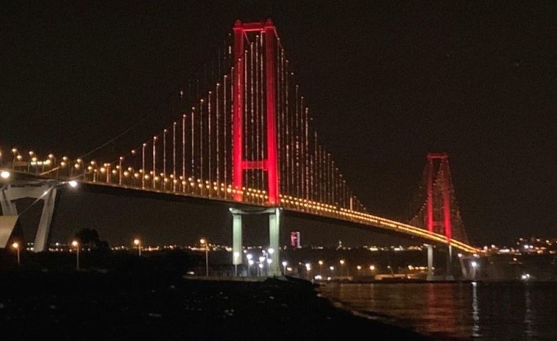 Sahil Güvenlik Komutanlığının 38. kuruluş yıl dönümü dolayısıyla Osmangazi Köprüsü özel olarak ışıklandırıldı.