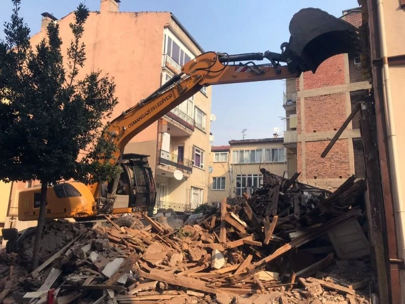 Osmangazi Belediyesi, İbrahimpaşa Mahallesi’nde can ve mal güvenliği açısından tehlike arz eden metruk binayı yıktı.