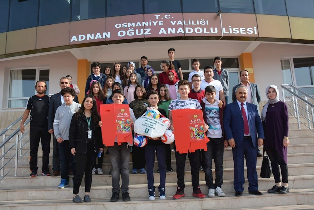 Osmaniye Belediyesi?nden Atık Pil Toplama Kampanyası Kapsamında Okullara Spor Malzemesi Desteği