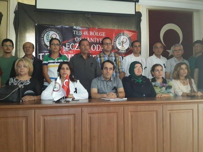 Osmaniye Eczacılar Odası Başkanı Mehmet Gül, Ankara`daki saldırının hedefinin Türkiye olduğunu belirterek, "10 Ekim 2015 günü yaşanan en büyük terör saldırısında yaşamını yitiren resmi rakamlara göre 96 kişinin ailelerine ve yakınlarına başsağlığı ve 400`e yakın yaralıya acil şifalar diliyoruz" dedi.Birlikte ve huzur içinde yaşamamızın tek koşulunun toplumsal barışı sağlamak olduğun vurgulayan Gül, Tüm aile, yakın ve dostlarının acılarını paylaşıyoruz. Bu saldırı tüm halkımıza yapılmıştır. Acıları, acımızdır. Bizler sağlık çalışanları olarak sağlığın en önemli koşulunun içeride ve dışarıda barış olduğunu biliyoruz. Bizler sağlık çalışanları olarak; Halkın sağlıklı yaşama hakkının, Yaşam hakkının ve Güvenlik hakkının Anayasa ile devlete verilmiş bir görev olduğunu hatırlatmak istiyor, Ülkenin kalbinde yaşanan bu terörist saldırının barışa, özgürlüğe, adalete ve demokrasiye yapılmış olduğunun tüm toplum kesimlerince idrak edilmesini istiyoruz. Bizim birlikte ve huzur içinde yaşamamızın tek koşulu toplumsal barıştır. Toplumsal barışı korumak için elimizden geleni yapmaya devam edeceğiz. Çünkü ölen biziz, bizim insanımız. Bu nedenle üç günlük Ulusal Yas süresi boyunca eczane vitrinlerimizi karartacak ve siyah kurdelelerimizi beyaz önlüklerimizin üzerinde taşıyacağız. Unutmayacağız, unutturmayacağız." dedi.