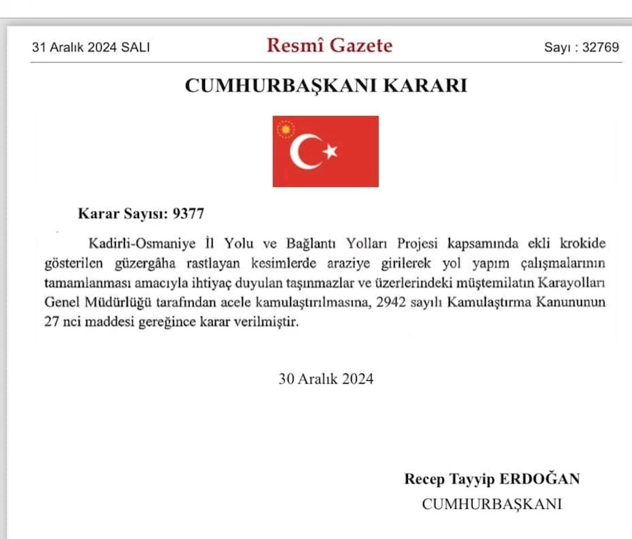 Osmaniye-Kadirli yolu çift şerit oluyor. Bugün resmi gazetede Cumhurbaşkanı Recep Tayyip Erdoğan’ın imzasıyla yayınlanan genelge ile programa alındı ve kamulaştırma çalışmalarının ardından yol çalışmasına başlanacağı bildirildi.