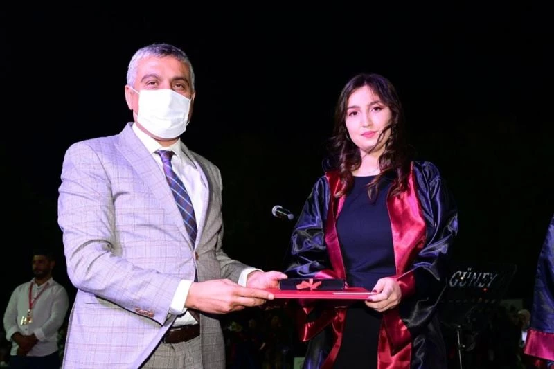 Başarılı öğrencilere belge ve ödül verildiği ve akademik birimlerini birincilikle tamamlayan öğrencilerin mezuniyet kütüğüne isimlerini çaktığı tören, havai fişek gösterisi ve Grup Anavarza'nın konseriyle sona erdi.