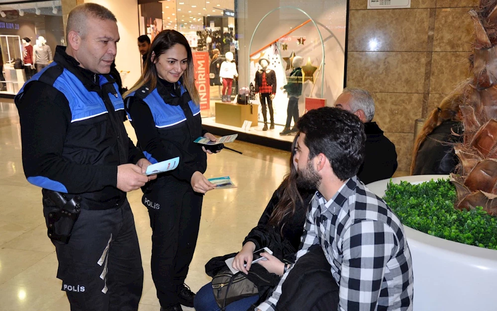 Osmaniye İl Emniyet Müdürlüğü`nün yılbaşına yönelik aldığı güvenlik tedbirleri kapsamında, Toplum Destekli Polislik Şube Müdürlüğü ekipleri, alışveriş ve çarşı merkezinde vatandaşları, olası hırsızlık, sahte para, dolandırıcılık, kapkaç ve trafik kazaları konusunda bilgilendirdi. Park 328 Alışveriş Merkezi`nde yılbaşı alışverişinde bulunan vatandaşlara çeşitli broşürlerden dağıtan ekipler, yapılan birebir görüşmede, dolmuş duraklarında, pazar yerleri ve alış veriş merkezleri gibi yoğun insan kalabalığının olduğu yerlerde çanta ve ceplerini sık sık kontrol etmelerini istediler. Yankesicilerin özellikle yaşlı insanları tercih ettiğini belirten polisler, dolandırıcılık ve kapkaç gibi olaylarla karşılaşıldığında suçluların eşkali, kullanmışsa oto plakası, model ve renginin vakit geçirilmeden polise bildirilmesini istediler. Kapkaç mağduru olmamak için çantanın yol tarafında taşınmaması ve kaldırımın yola yakın tarafında yürünmemesi uyarısında bulunan ekipler, ayrıca büyük paralar taşınmak istendiğinde bir kaç parça halinde emniyetli yerlerde taşınmasını, adres sormak para bozdurmak gibi bahanelerle yaklaşmaya çalışan tanımadıkları şahıslara karşı dikkatli olunmasını istediler.