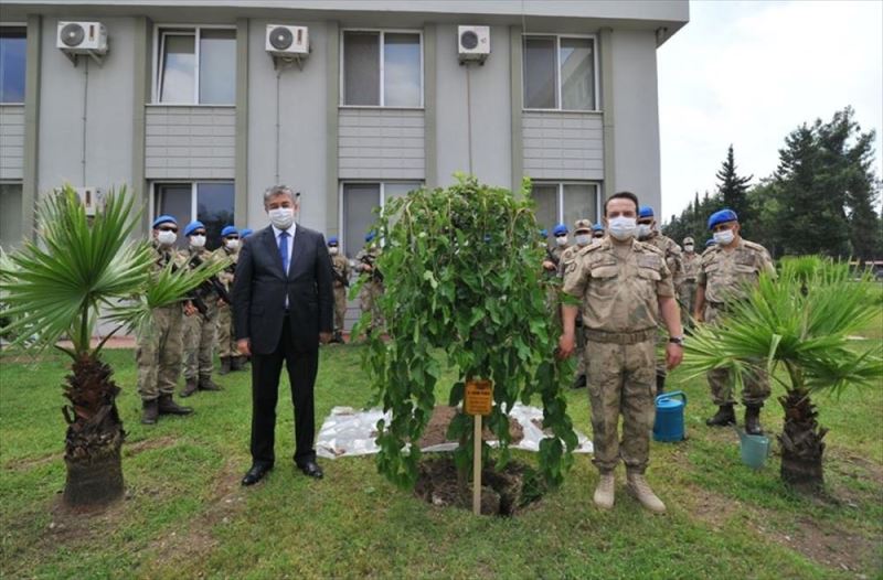 Vali Yilmaz, ziyaret sonunda Il Jandarma Komutanligi bahçesine adini tasiyan fidan dikti.