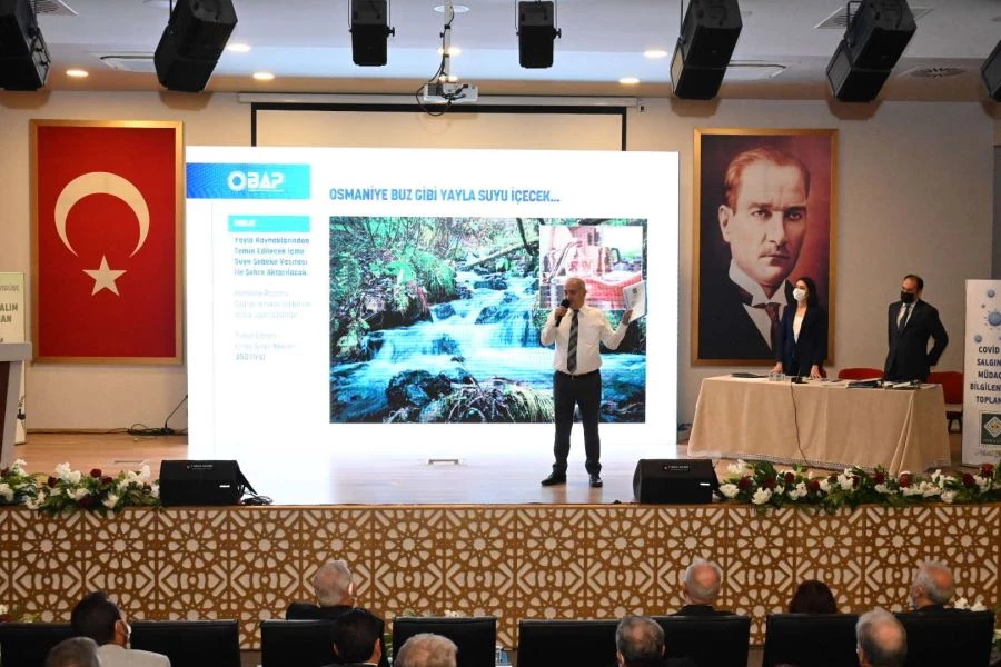 Toplantının ikinci kısmı ile belediye hizmet değerlendirmelerine ayrıldı. Mahalle muhtarlarına “ Osmaniye Büyümekte Kararlı “ sloganı ile seslenen Osmaniye Belediye Başkanı Kadir Kara, şehrin geleceği açısından büyük önem taşıyan ve tarihi yatırımlar olan Yağmur Suyu Drenaj Hattı, Kanalizasyon Şebekesi Yapımı ve İçme Suyu temin projeleri hakkında sunum yaptı. Başkan Kadir Kara; “Şehrimizin içme suyu, kanalizasyon ve yağmur suyu sorunlarını kökten çözecek projelere hep birlikte imza atıyoruz. Gecemizi gündüzümüze katarak bu dev yatırımlarımızı Osmaniye'mize kazandırdık ve kazandırmaya da devam edeceğiz. Yaptığımız ve yapmakta olacağımız her çalışmayı Osmaniye'mizin geleceği için yapıyoruz. Osmaniye için artık daha büyük projeler gerçekleştiriyoruz. Mahalle muhtarlarımızla daha sık bir araya gelerek projelerimizi konuşmaya, onların da fikirlerini alarak hizmetlerimizi en verimli şekliyle yapmaya devam edeceğiz.” dedi.