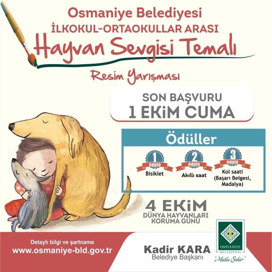 Osmaniye Belediyesi, 4 Ekim Dünya Hayvanları Koruma Günü etkinlikleri kapsamında ‘Hayvan Sevgisi’ konulu resim yapma yarışması düzenlenecek.