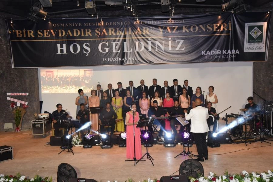 Osmaniye Belediyesi tarafından düzenlenen Osmaniye Musiki Derneği Belediye Korosunun sahne aldığı ‘Bir Sevdadır Şarkılar’ yaz konserine Belediye Başkanı Kadir Kara, Vali Yardımcısı Dr. Ömer Faruk Günay, Düziçi Kaymakamı Turgay İlhan, siyasi parti il, merkez ilçe başkanları ve temsilcileri, meslek oda başkanları, sivil toplum kuruluşları temsilcileri ile çok sayıda vatandaş katıldı.