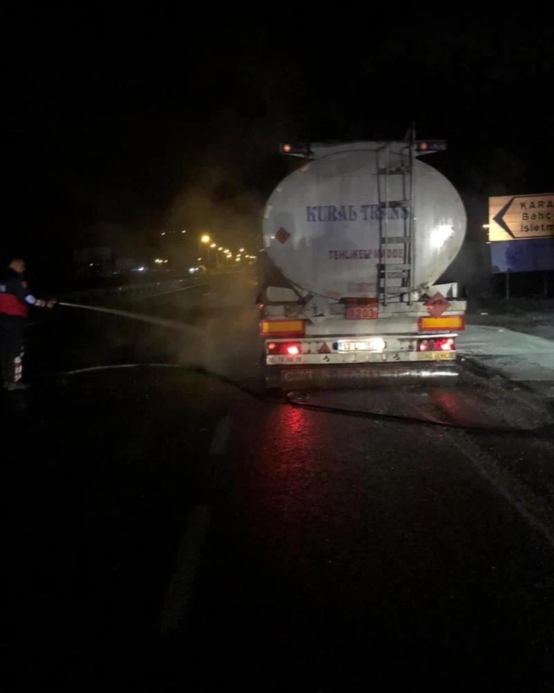 OSMANİYE - Osmaniye'de akaryakıt tankerinin lastiklerinde çıkan yangın, itfaiye ekiplerince söndürüldü.