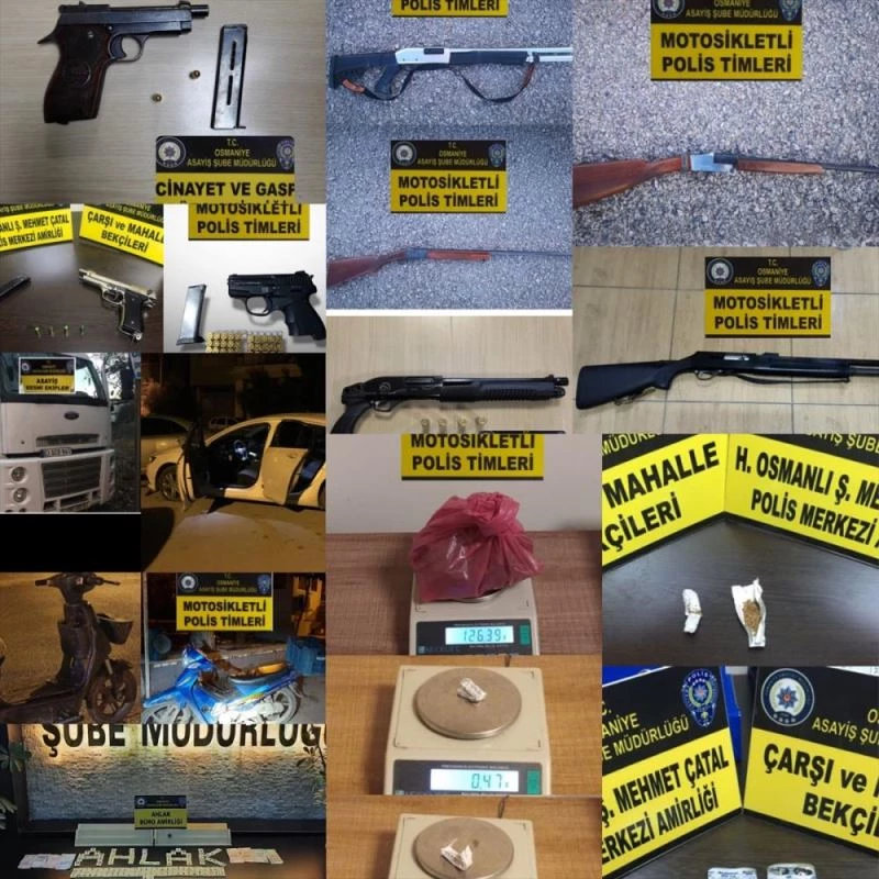 Uygulamalarda, 2 ruhsatsız tabanca, 5 ruhsatsız av tüfeği, 1 kurusıkı tabanca, 2 çalıntı motosiklet, 2 çalıntı araç, 1,41 gram sentetik uyuşturucu, 126,39 gram esrar, 1,22 gram metamfetamin ile 13 uyuşturucu hap ele geçirildi, haklarında yakalama kararı bulunan 127 zanlı gözaltına alındı.