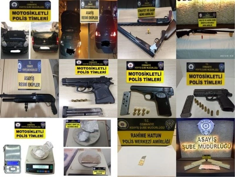 Osmaniye İl Emniyet Müdürlüğü ekipleri, 5-12 Aralık’ta kent genelinde asayiş uygulamaları yaptı. Çalışmalarda, çeşitli suçlara karıştıkları öne sürülen 218 şüpheli gözaltına alındı. Emniyetteki işlemlerinin ardından adliyeye sevk edilen zanlılardan 8’i tutuklandı.