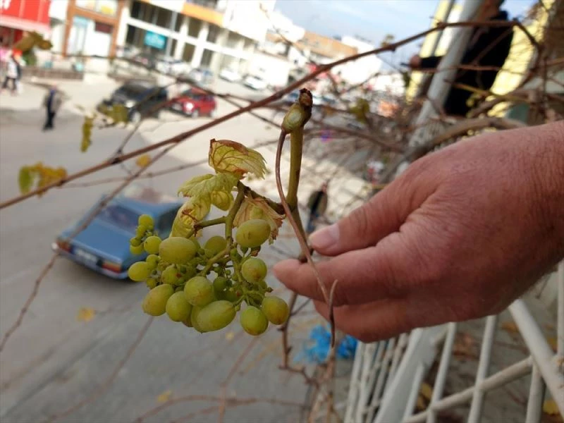 Asmasındaki olgunlaşan üzümleri topladığını ifade eden Karakuş, "Tadı gayet güzel. Kış ortasında üzüm meyvesini dalında ilk defa gördüm. Bu duruma hayret ettim." dedi.