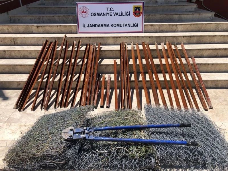 Edinilen bilgiye göre, Kadirli ilçesinde bulunan bağ, bahçe ve tarladan çit teli ve demirlerinin çalındığı ihbarını alan Osmaniye İl Jandarma Komutanlığı konuya ilgili çalışma başlattı. Çalışmalar çerçevesinde yapılan teknik ve fiziki takibin ardından malzemeleri çalan şahsın O.M. olduğu tespit edildi. Adresi belirlenen şüpheli şahıs Jandarma Suç Araştırma Timi (JASAT) ve Kadirli İlçe Jandarma Komutanlığı ekipleri tarafından gözaltına alındı.