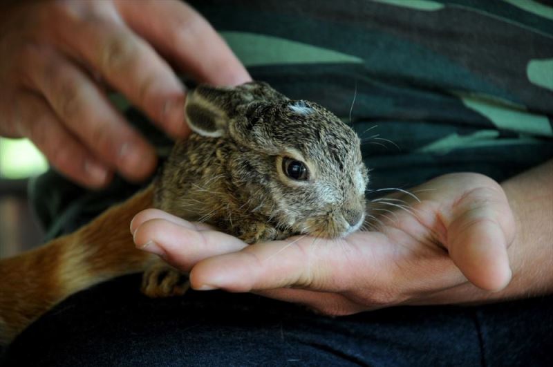 Ilçeye bagli Yesilyayla köyünde oturan 18 yasindaki Enes Karaoglu, misir tarlasinda buldugu yeni dogmus yabani tavsan yavrusunu evine getirip bakmaya basladi.