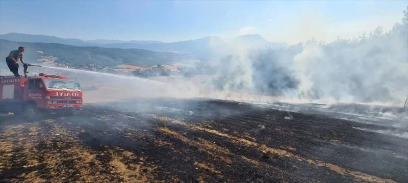 Çolaklı mevkisinde henüz bilinmeyen nedenle başlayan anız yangını, rüzgarın etkisiyle kısa sürede büyüdü.