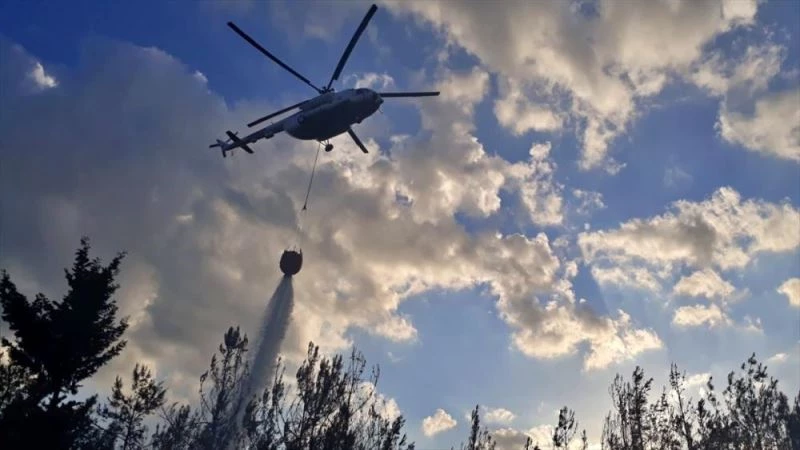 Yangın söndürme helikopteri, 7 arazöz ve 70 işçiyle müdahale edilen yangın, yaklaşık 2 saatlik çalışmayla kontrol altına alındı.
