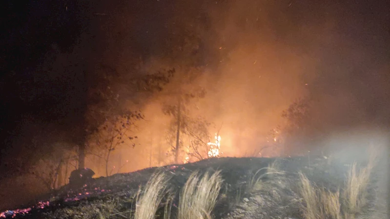 Rüzgarın etkisiyle alevler kısa sürede büyüdü.