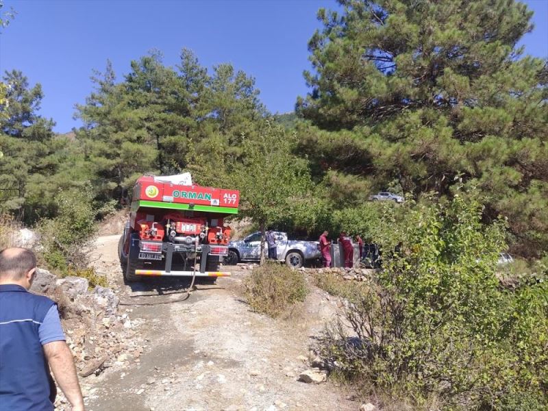 Alevlere 5 arazöz, 4 itfaiye araci ve 2 yangin söndürme helikopteriyle müdahale edildi.