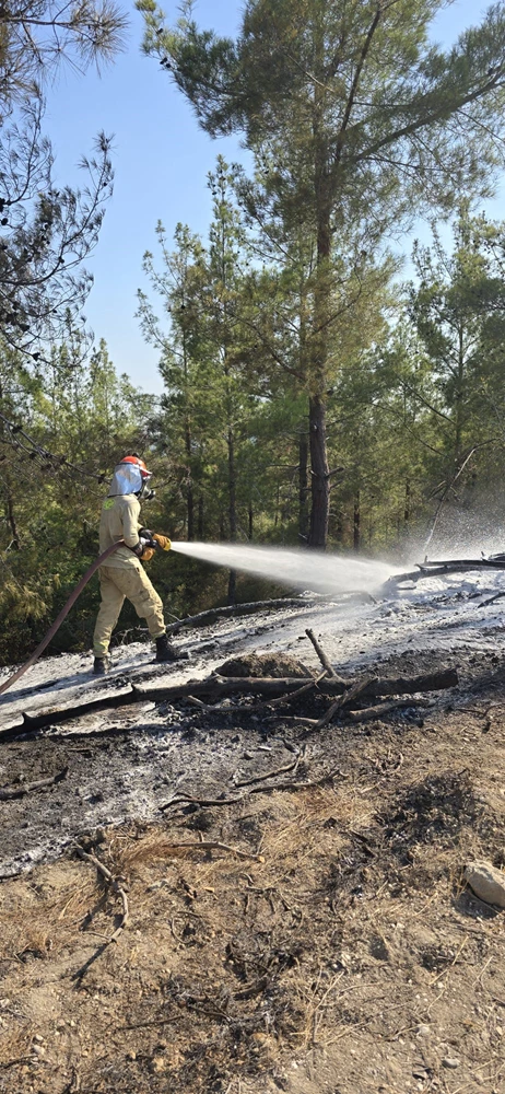 Yangında 3 dekarlık ormanlık alan zarar görürken, bölgede soğutma çalışmaları devam ediyor.