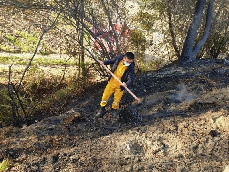 Ekiplerin müdahalesiyle kontrol altına alınan yangında yaklaşık 4 dekarlık alan zarar gördü.