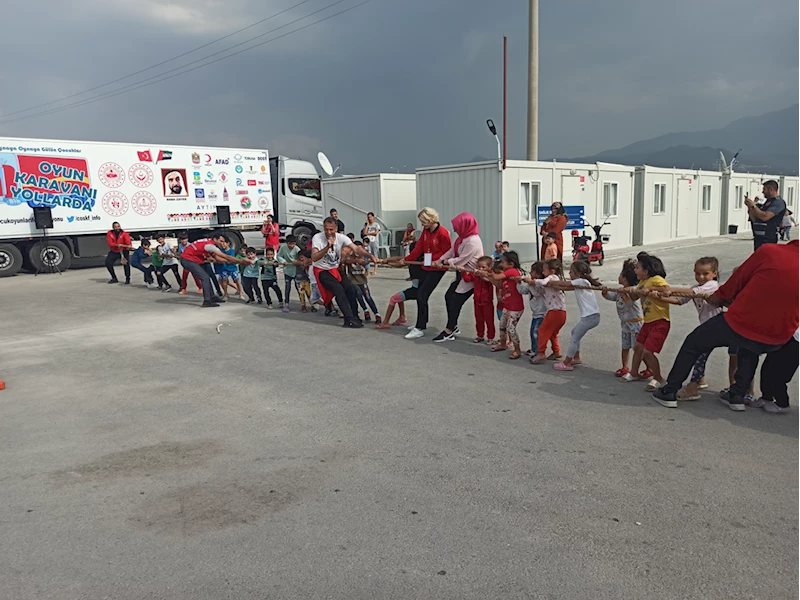 Federasyon tarafından deprem bölgesindeki çocuklar için hazırlanan "oyun tırı", Karaçay Konteyner Kente geldi.
