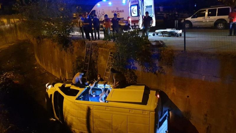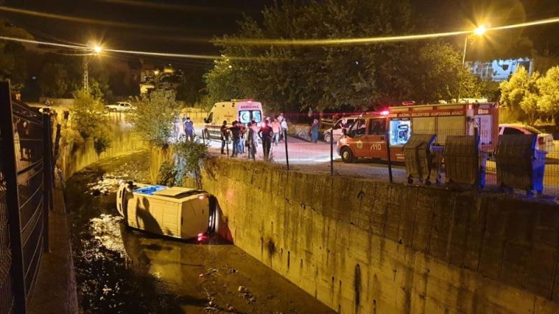 Geri manevra yaparken panelvanla Bülbül Deresi'ne düsen sürücü Çukadar, yaralandi.