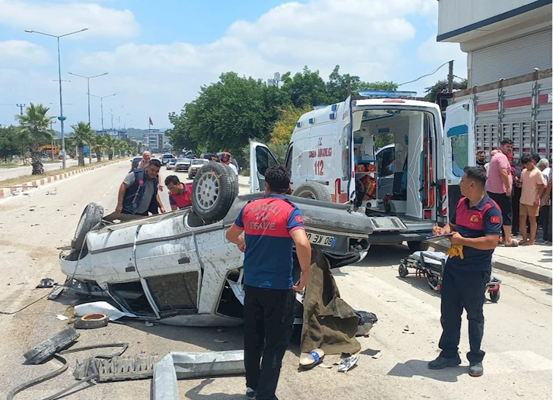 Ters dönen araçta sıkışan sürücü ve yanındaki 2 kişi itfaiye ekiplerinin çalışmasıyla bulundukları yerden çıkarıldı.