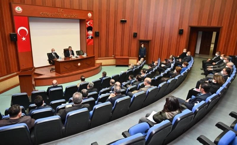 Osmaniye’de idarede birliğin ve koordinasyonun sağlanması, gerekli tedbirlerin alınması, ilin ekonomik potansiyelinin değerlendirilmesi ve kamu hizmetlerinin planlanması amacıyla düzenlenen koordinasyon ve ekonomik potansiyel değerlendirme toplantısı Vali Erdinç Yılmaz başkanlığında gerçekleştirildi. Toplantını açılış konuşmasını yapan tüm kurumlara pandemi döneminde gösterdikleri gayretlerden dolayı teşekkür etti.