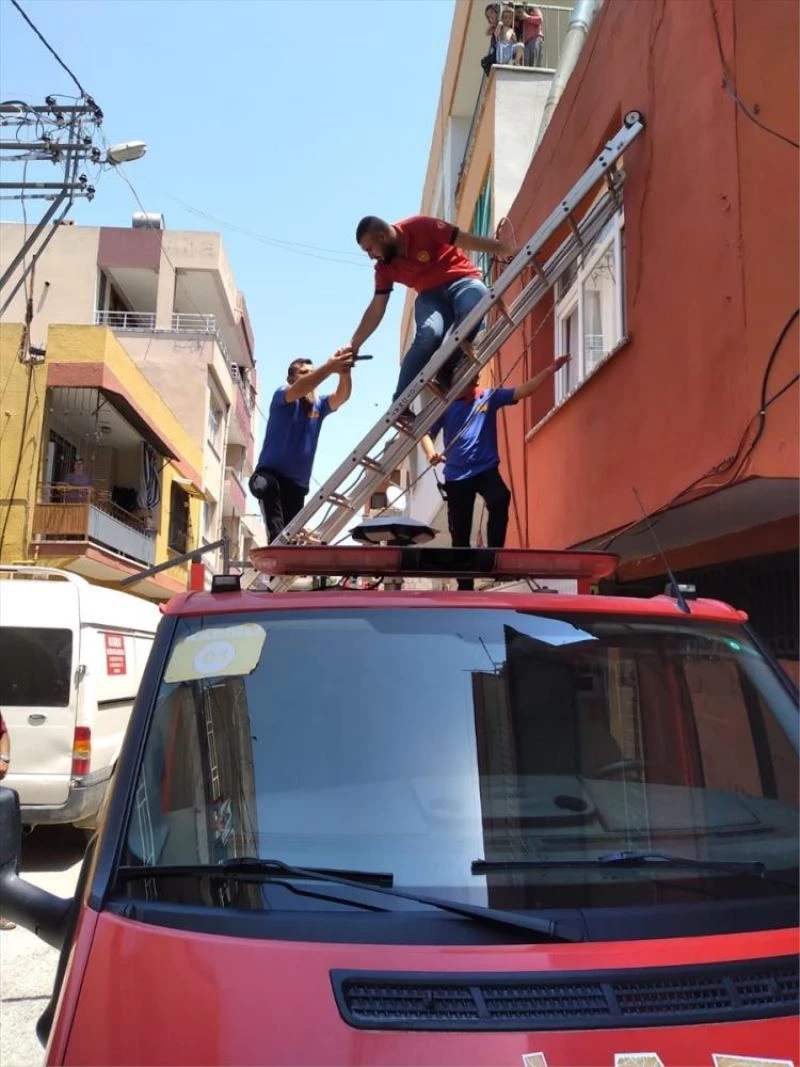 Olay yerine gelen ekipler, merdiven yardımıyla evin balkonuna çıkarak, pencereden içeri girdi.