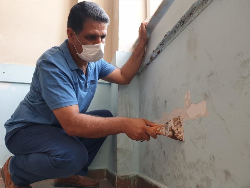 Yaz tatilini ilçede geçiren öğretmenler, öğrencilerinin okulda daha ferah ve temiz bir ortamda eğitim görmesi için kolları sıvadı.