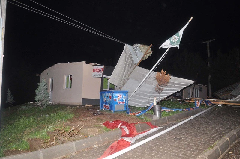 Merkeze bağlı Vatan Mahallesi`nde ki bir binanın çatısı gece geç saatlerde uçtu. Sesler üzerine uyanan vatandaşlar, içerisinde terzihane, mini market ve muhtarlık ofisinin bulunduğu binanın çatısının yerinde olmadığını fark edince durumu polis ve itfaiye ekiplerine haber verdiler. Olay yerine gelen TEDAŞ ekipleri elektrikleri keserken, teller üzerinde asılı kalan çatı itfaiye ekiplerinin çalışması sonucu indirildi. Çatıdan uçan bazı parçalar geniş bir alana yayılırken, bir otomobilin üzerine düşen parçada hafif maddi hasara neden oldu. Mahallenin elektriği yaklaşık 3 saat verilemedi.
