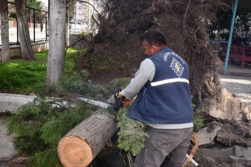 Osmaniye’de öğle saatlerinde etkili olmaya başlayan kuvvetli rüzgar zaman zaman şiddetini arttırarak fırtınaya dönüştü. Fırtına nedeniyle kent genelinde birçok ev, iş yeri ve okul çatısı uçarken ağaçlarda köklerinden devrildi. Osmaniye Valiliği tarafından yapılan kuvvetli rüzgar uyarısı sonrasında Osmaniye Belediyesi’ne bağlı İtfaiye, Temizlik, Fen, Zabıta, Park ve Bahçeler Müdürlüğü ekipleri teyakkuza geçti. Sabah saatlerinden itibaren tüm birimleriyle muhtemel olumsuzluklara müdahale etmek isteyen Osmaniye Belediyesi ekipleri fırtına anında meydana gelen olaylara da anında müdahale etti.
