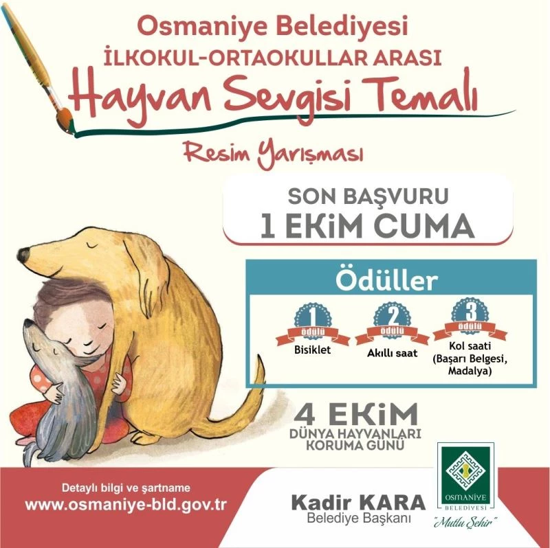 Dünya Hayvanları Koruma Günü etkinlikleri kapsamında Osmaniye Belediyesi tarafından ‘Hayvan Sevgisi’ konulu resim yapma yarışması düzenlenecek.