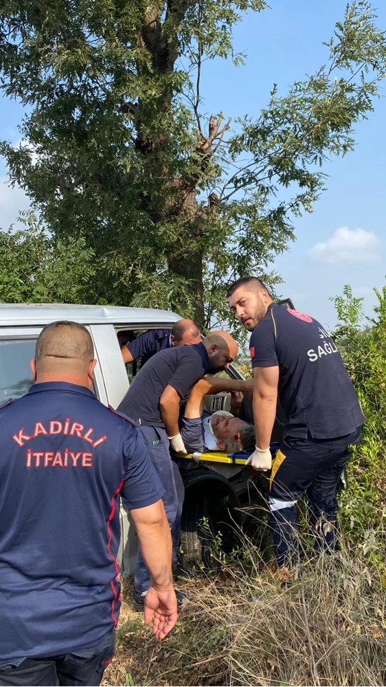 İtfaiye ekiplerince araçta sıkıştığı yerden çıkarılan yaralı sürücü, ambulansla hastaneye götürüldü.