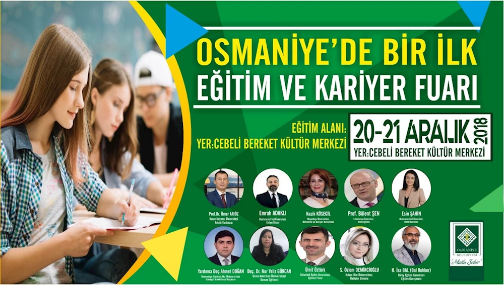 Osmaniye Belediyesi?nin katkılarıyla Osmaniye, ilk kez eğitim ve kariyer fuarına ev sahipliği yapıyor. 20-21 Aralık da düzenlenecek olan Eğitim ve Kariyer Fuarı Cebeli Bereket Kültür Merkezi?nde yapılacak.