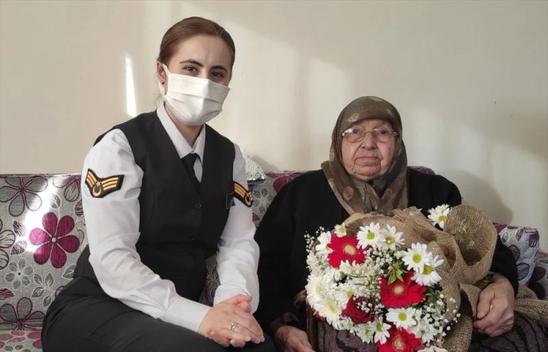 OSMANİYE - Osmaniye İl Jandarma Komutanlığı ekipleri, Türkiye'de kadınlara seçme ve seçilme hakkının tanınmasının yıl dönümü münasebetiyle 108 yaşındaki Emine Kederoğlu'nu evinde ziyaret etti.