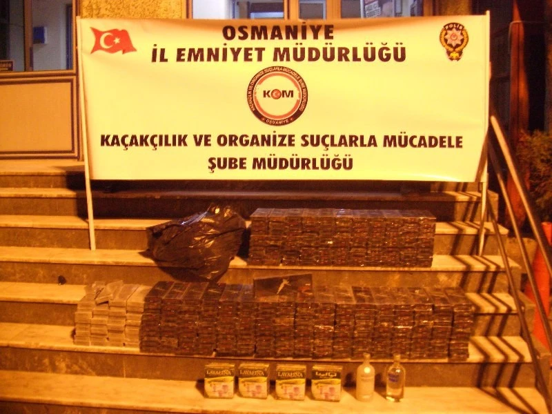 Osmaniye`de polisin düzenlediği uygulamalarda, gümrük kaçağı 15 bin 200 paket sigara, 9 kilo 300 gram esrar, 4 paket kaçak çay ve 2 şişe içki ele geçirildi, gözaltına alınan 3 kişiden 2`si tutuklandı. İl Emniyet Müdürlüğü Kaçakçılık ve Organize Suçlarla Mücadele Şubesi (KOM) ekipleri, Tarsus - Adana - Gaziantep (TAG) E90 otoyolu Kadirli gişeleri yakınındaki bir dinlenme tesisi girişinde uygulama noktası oluşturdu. Bu sırada şüphe üzerine bir yolcu otobüsünde narkotik köpek `Crazy`nin de katılımıyla arama yapıldı. Otobüsün bagajında valiz içerisinde siyah poşete konulmuş 9 kilo 300 gram esrar maddesi ele geçirildi. Otobüste yolcu olarak bulunan ve valizi sahibi olduğu belirlenen Mustafa S. gözaltına alındı.Diğer yandan aynı uygulama noktasında, Hacı Murat G`nin sürücülüğünü yaptığı 31 KDA 25 plakalı kapalı kasa kamyonette şüphe üzerine durduruldu. Yapılan aramada, çamaşır makinesi, halı ve koltuk kılıflarının arasına gizlenmiş vaziyette 3 bin 380 paket kaçak sigara, 4 paket kaçak çay ve 2 şişe alkol gele geçirildi.KOM Polislerinin, D-400 karayolundaki uygulama noktasında ise Engin A. (36) idaresindeki 06 AK 1864 plakalı kamyonette yaptığı aramada da 11 bin 820 paket kaçak sigara ele geçirildi.Gözaltına alınan Engin A ve Mustafa S. emniyetteki işlemlerinin ardından sevk edildikleri adli makamlarca tutuklanırken, Hacı Murat G. tutuksuz yargılanmak üzere serbest bırakıldığı öğrenildi.