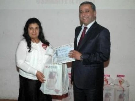 OSMANİYE - Osmaniye?de her yıl düzenlenen ?Kadın Çiftçiler Yarışıyor? yarışmasının il finali gerçekleştirildi. Ahmet Şekip Ersoy Kültür Merkezinde bu yıl 9.?su gerçekleştirilen yarışmaya il merkezi ile Kadirli, Sumbas, Düziçi, Hasanbeyli, Toprakkale ve Bahçe ilçelerinden 7 kadın çiftçi katıldı.Yarışmada ilk 3?e giren kadın çiftçilere tam, yarım ve çeyrek altın ile çeşitli hediyeleri Osmaniye Valisi Celalettin Cerrah ve eşi Hülya Cerrah tarafından verildi.Çiftçilikte hanımların belli bir yol kat ettiğini belirten Vali Cerrah, ?Bilindiği gibi hanımların emeğine karşılık yeni otogar kavşağına elinde yerfıstığı tutan hanım heykeli yerleştirdik. Son üç yıldan bu yıl yerfıstığı, zeytinyağı ve çeşitli tarım ürünlerini en iyi şekilde değerlendirmek için uğraş veriyoruz. Zeytin ağaçlarının budanması konusunda başarılı olamadık. Bu yüzden dışarıdan gelenlere yaptırıyoruz. Hanımlar bu işi daha iyi yapıyorlar. Zeytin ağaçlarının budanması ile ilgili vereceğimiz kursu bayanlara yönelik yapmak istiyorum. Budama kursu konusunda da hanımlarımızın ilgisini bekliyoruz. İş-Kur?un geçen seneki kursuna müracaat eden olmadı. Bu bize ileri de lazım olacak, çok önemli bir beceri kursudur. Yarışmada başarılı olan hanım kardeşlerimize teşekkür ediyorum.? dedi.Gıda, Tarım ve Hayvancılık İl Müdürü İbrahim Sağlam, bu yıl 81 ilin 9 bölgeye ayrılacağını ve Osmaniye?nin yer aldığı grubun bölge finalinin 18 Nisan`da Osmaniye?de yapılacağını söyledi.Bölge finalleri sonrasında Türkiye finalinin ise Çanakkale?de yapılacağını belirten Sağlam, bölge finalinde her ilin birincisinin kendisine uygun bir de tarımsal proje sunacağını ifade etti.Gıda, Tarım ve Hayvancılık İl Müdürü İbrahim Sağlam, ?Yarışmacıların sunacağı projeler, bölge finalinde puanlamaya dahil olmayıp Türkiye Finalinde puanlamaya tabi olacak ve İlk iki dereceye giren yarışmacıların projelerinden her birine Bakanlığımızca 30 bin TL ödül verilerek projenin uygulama aşamaları ve kontrol edilecektir.? şeklinde konuştu.Yarışmacıların tanıtımının ardından yüzde 80`inin tarımsal, yüzde 20?sinin ev ekonomisi konularından oluşan 15 soru soruldu. Yarışmada Sumbas ilçesi Armağanlı köyünden katılan Cennet Avan soruların 14?üne doğru cevap vererek il birincisi oldu. Yarışmada dereceye gidenlere altın ve çeşitli hediyeler verildi.