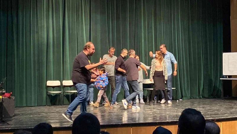 Salonun tamamen dolu olduğu gözlenen tiyatro gösterisi yaklaşık 1,5 saat sürdü.