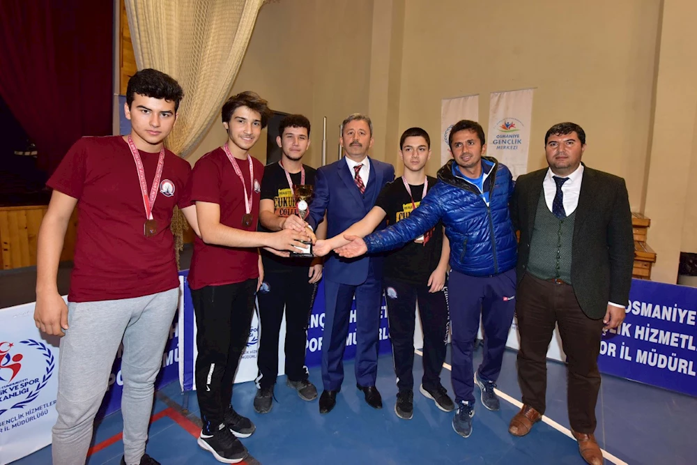 Osmaniye Gençlik Hizmetleri ve Spor Müdürlüğü tarafından "Okul Sporları" kapsamında düzenlenen `Masa Tenisi Turnuvası` sona erdi. Gençlik Merkezinde Spor Salonu`nda yapılan ve oldukça çekişmeli müsabakalara sahne olan yarışmaya, Osmaniye?nin farklı ilçelerinden 45 okul takımı ve 180 sporcu katıldı. Müsabakalar sonunda Genç Kızlarda; Ahmet Cevdet Paşa Anadolu Lisesi takımı birinciliği, Kadirli Savrun Anadolu Lisesi ikinciliği, Düziçi ÇEAŞ Anadolu Lisesi üçüncülüğü Bahçe Anadolu Lisesi dördüncülüğü elde etti. Genç Erkeklerde ise Osmaniye Mesleki Teknik ve Anadolu Lisesi takımı birinci, Şehit Mehmet Karacatilki AİHL ikinci, Özel Kadirli Çukurova Anadolu Lisesi üçüncü, Kadirli Savrun Anadolu Lisesi dördüncü oldu. Gençlerin kıyasıya rekabetinde kızlar ve erkeklerde ilk 4`e girmeyi başaran takımlar kupa ve madalyaları Osmaniye Gençlik ve Spor İl Müdürü Mustafa Loğoğlu ve Masa Tenisi İl temsilcisi Hanifi Kaplan tarafından verildi.