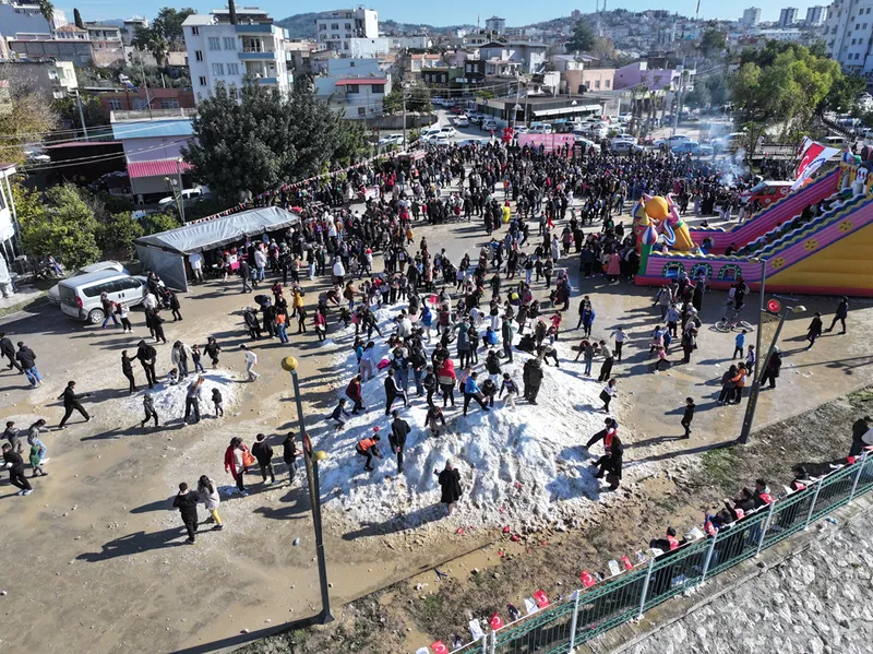 Osmaniye'de öğrenciler kamyonlarla getirilen karla eğlendi