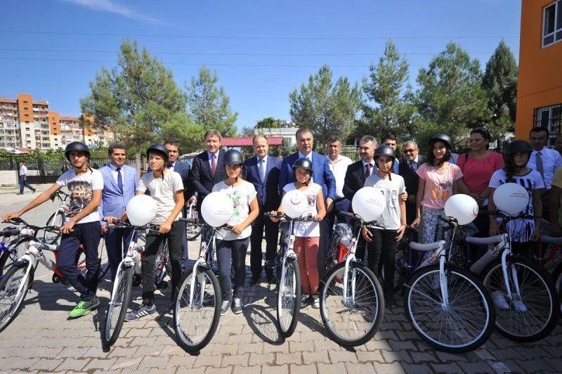 Milli Eğitim Bakanlığı ve Sağlık Bakanlığı işbirliğinde hazırlanan "Türkiye Sağlıklı Beslenme ve Hareketli Hayat Programı? kapsamında Remzi Özer Yatılı Bölge Ortaokulu?nda öğrencilere bisiklet dağıtıldı. Düzenlenen programa Vali Kerem Ali, Vali Yardımcıları Süleyman Yılmaz ve Alp Eren Yılmaz, İl Sağlık Müdürü Dr. Mehmet Cingöz, İl Halk Sağlığı Müdürü Dr. Alper Latif Boz, İl Milli Eğitim Müdürü Ramazan Çelik ve okul müdürleri katıldı.Tören için okula giden Vali Kerem Al, Okul Müdürü Abdullah Erdem, öğretmenler ve öğrenciler tarafından karşılandı. Okul Müdüründen okul hakkında bilgi alan Vali Al, ellerinde ?Hoş geldin Hareket Elveda Diyabet?, ?Düzenli Yürüyüş Bizi Hastalıklardan Korur? ve ?Obeziteye Karşı El Ele Yürüyelim? gibi pankartlar taşıyan öğrencilerle de bir süre sohbet etti.İl Halk Sağlığı Müdürü Dr. Alper Latif Boz Vali Kerem Al?a proje hakkında bilgi verdi. Projenin, fiziksel aktiviteyi artırmak ve sağlıklı nesiller yetiştirmek amacıyla uygulandığını ifade eden Dr. Alper Latif Boz, ?Sayın Bakanımızın talimatları doğrultusunda Milli Eğitim Bakanlığımızda 5.,6. ve 7. sınıflarda seçmeli spor dersini açan ve/veya ?bisiklet modülü? dersini uygulayan okullarda öğrencilere kullandırılmak üzere Halk Sağlığı Müdürlüğü tarafından temin edilen 180 adet bisiklet, İl merkezi ve ilçelerde mevcut bulunan ve Milli Eğitim Müdürlüğü tarafından tespit edilen 18 okula verilmek üzere ilgili protokol kapsamında teslim edilecektir. Bugün, Remzi Özer Yatılı Bölge Okulunda gerçekleştirilen ilk teslim töreninde 4 okulumuza 10?ar adet bisiklet takdim edilecektir. Alımı daha sonra gerçekleştirilecek olan 140 adet bisiklet 12 Kasım 2015 tarihinde İl Milli Eğitim Müdürlüğüne Halk Sağlığı Müdürlüğü tarafından teslim edilecektir? diye konuştu.Programın son bölümünde öğrencilere bisikletleri dağıtıldı. Protokol mensupları da öğrencilerle birlikte bisiklete bindiler. Öğrencilere bisikletlerini veren Vali Kerem Al, sağlıklı, başarılı ve mutlu bir yaşamları olmasını temenni etti.Törenin ardından Vali Kerem Al, okulun pansiyonunda inceleme ve denetlemelerde bulundu. İlk olarak pansiyonun yemekhanesini denetleyen Vali Al, pansiyondaki etüt odalarını da inceledi. Son olarak öğrencilerle masa tenisi ve satranç oynayan Vali Kerem Al, okuldan ayrıldı.