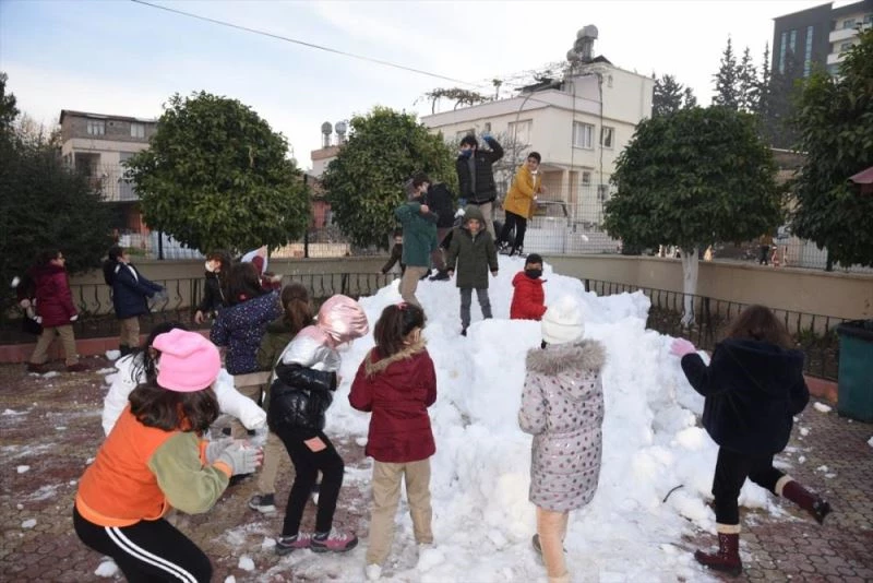 OSMANİYE - Osmaniye'de, öğrencilerin eğlenebilmesi için okul bahçesine kar taşındı.