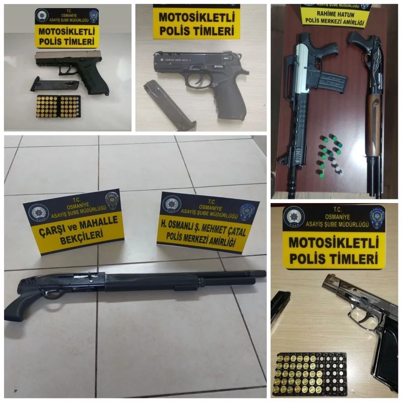 Osmaniye’de polis ekiplerinin yaptığı şok uygulamalarda ruhsatsız 6 silah ele geçirildi.