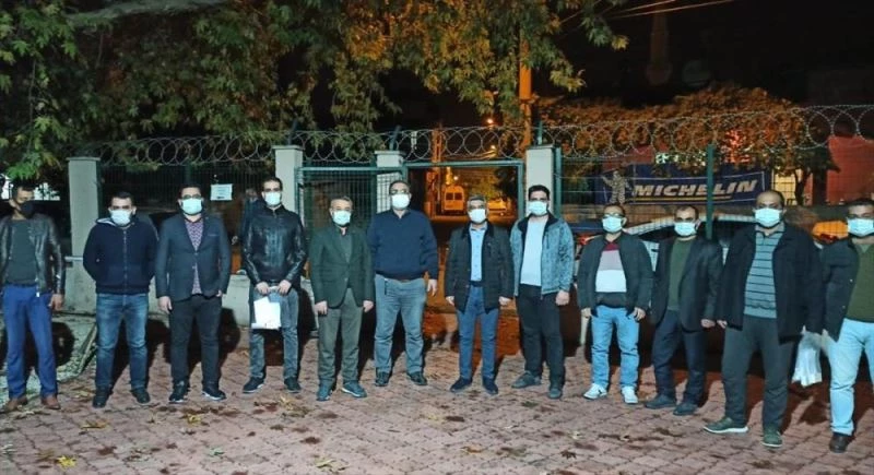 Sendika üyeleri, ilaç dagitiminin ardindan filyasyon ekibine tatli ikram etti.