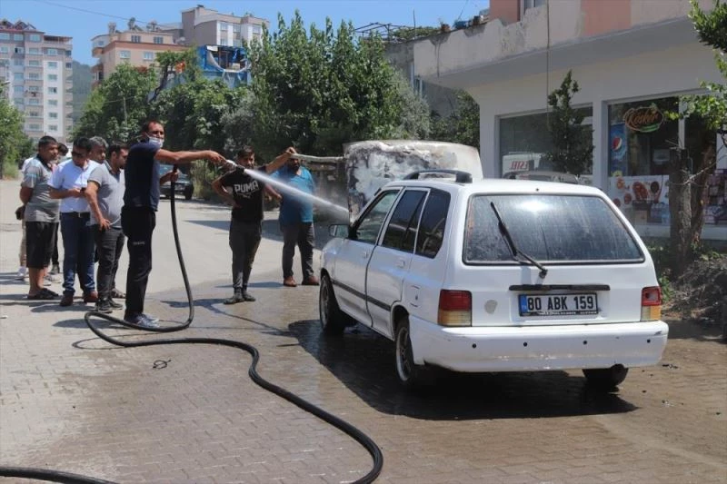 OSMANİYE - Osmaniye’nin Düziçi ilçesinde seyir halindeyken alev alan otomobilde hasar oluştu.