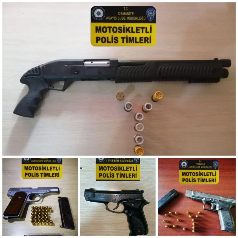 Osmaniye’de yunus ekiplerinin yaptığı şok uygulamalarda 3’ü tabanca 1’i pompalı olmak üzere 4 silah ele geçirildi.