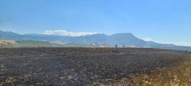 Ekiplerin 2 saatlik çalışması sonucu kontrol altına alınan yangında, yaklaşık 300 dönüm buğday ekili alan ile bir biçerdöver zarar gördü.