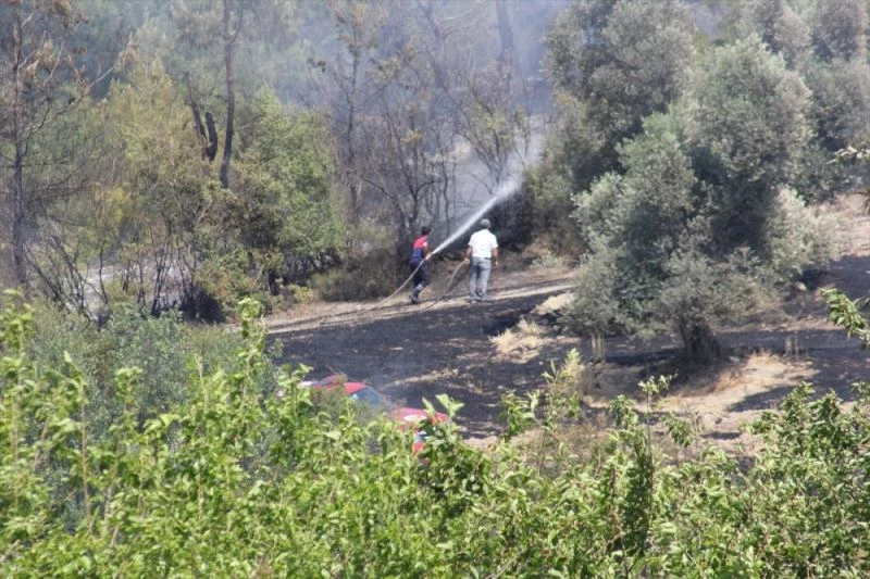 Yanan bölgenin etrafında ekili arazileri olan köylüler de söndürme çalışmalarına kovalarla su taşıyarak destek verdi.