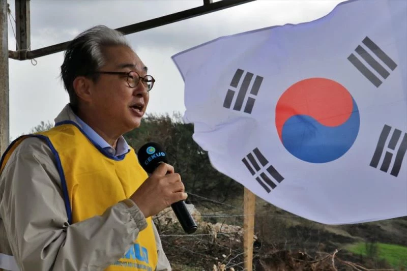 Güney Kore'nin Ankara Büyükelçisi Won Ik Lee, buradaki törende, geçen yıl Osmaniye'deki orman yangınlarında zarar gören alanlar için Güney Kore halkının üzüntülerini ve geçmiş olsun dileklerini iletti.
