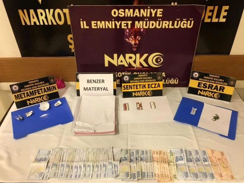 Şahısların ikamet, iş yeri ve araçlarında yapılan aramalarda 16.72 gram esrar, 115.77 gram metamfetamin, 1.31 gram bonzai, 4 kök Hint keneviri, 81 adet sentetik ecza, 5 adet captagon, 1 adet hassas terazi ile 3 bin 320 tl para ele geçirildi.